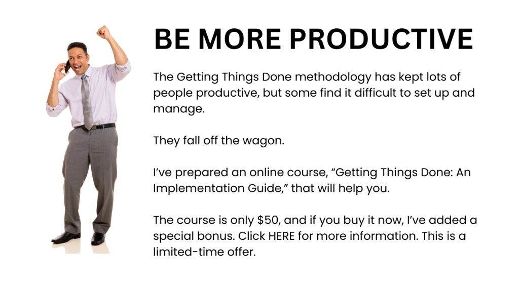 Get my FREE weekly newsletter on productivity, leadership, Evernote,and GTD. Sign up HERE.
