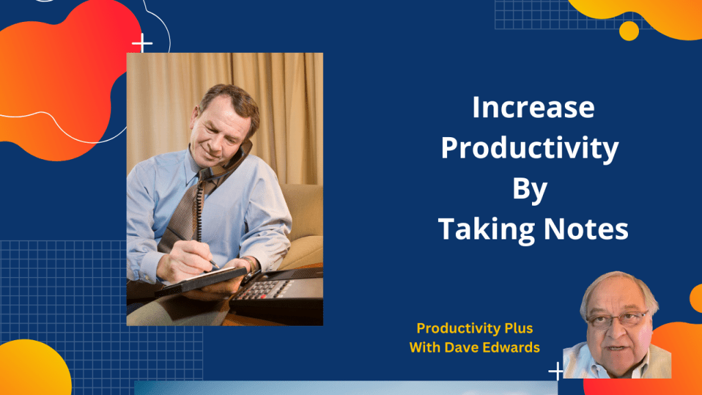 Every idea you have and everything you need to do should be written down. That includes ideas that surface in meetings or just things you want to remember to do.