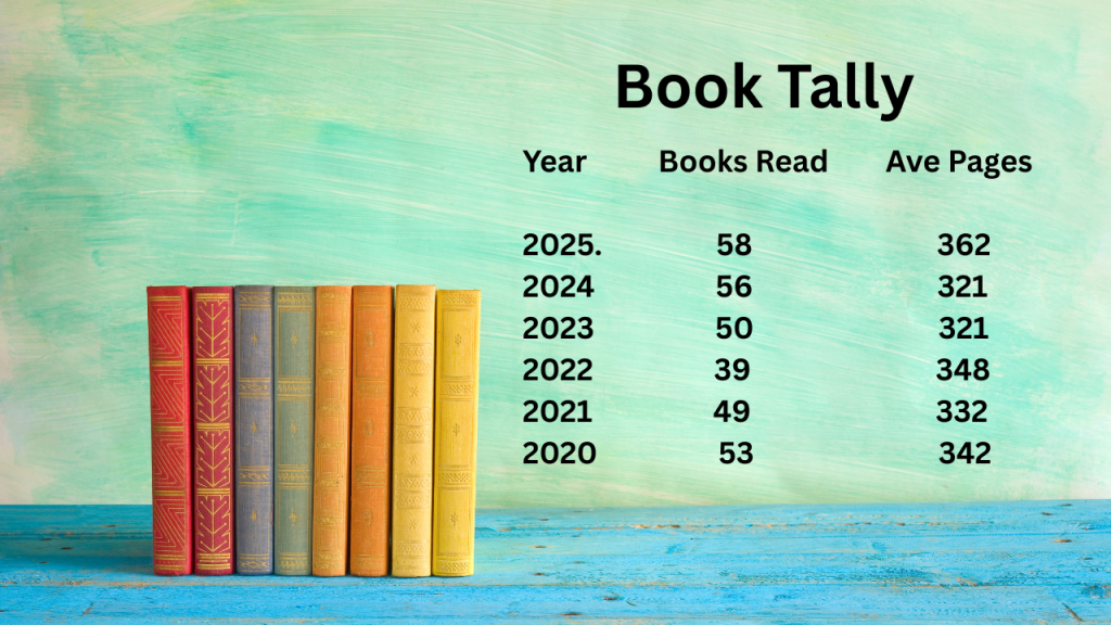I like to read. When I worked a 9-5, I had little time to read much beyond a daily newspaper, but I have always been interested in learning, so when I ‘retired’ it was the perfect time to read more. For me, reading is not a race. While I read 58 books during 2025, I like to read slowly and take notes. I even write summaries so I can refer back to them. Because they are stored digitally, I can also search for topics long after I have put down the book (or usually in my case, my e-reader). You can find my summaries on my website. By the way, I hated writing book reports when I was in school. But, back then, I was reading for a grade, not really to absorb facts.