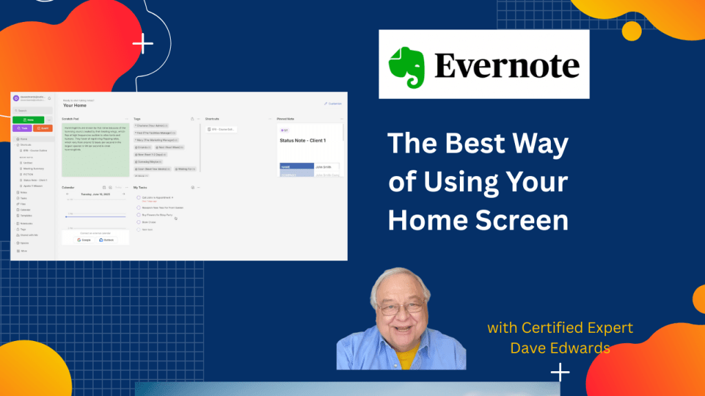 I can help you build a simple Evernote setup that fits the way you work. You get one-on-one coaching where I review your notes, spot gaps, and guide you toward a cleaner flow. I share my screen to show clear examples and help you shape a system that feels natural. You walk away with a setup you trust and a plan that helps you stay on track every day. Find out more at www.DaveEdwardsMedia/Evernote