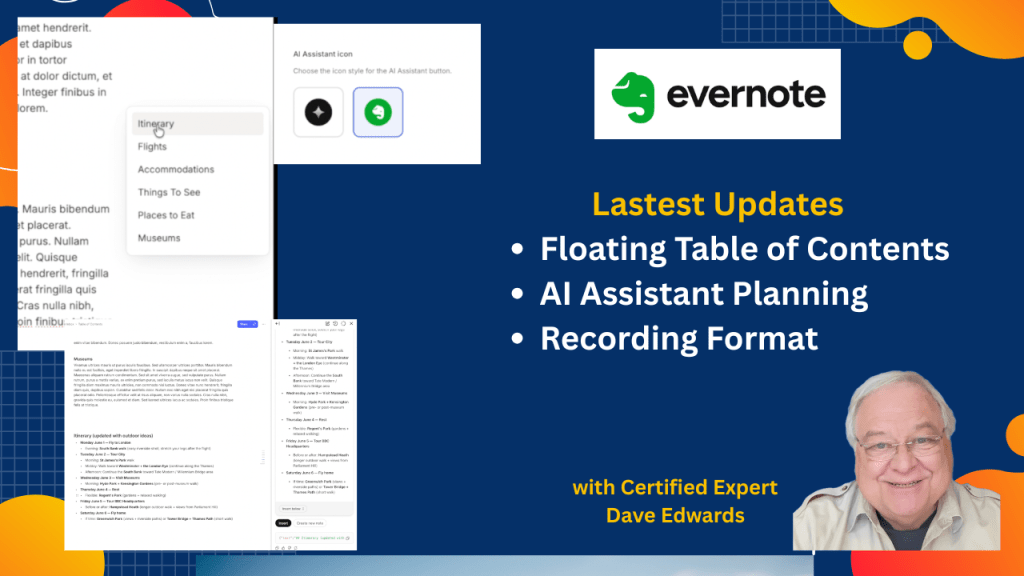 I can help you build a simple Evernote setup that fits the way you work. You get one-on-one coaching where I review your notes, spot gaps, and guide you toward a cleaner flow. I share my screen to show clear examples and help you shape a system that feels natural. You walk away with a setup you trust and a plan that helps you stay on track every day. Find out more at www.DaveEdwardsMedia/Evernote