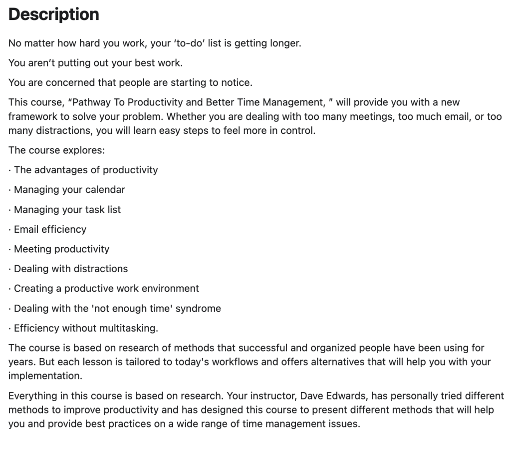My online course, “Pathway To Productivity and Better Time Management” will provide you with a new framework to solve your problem.